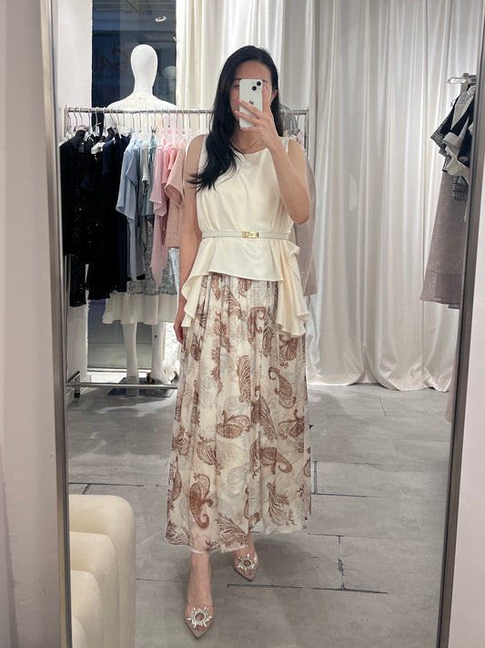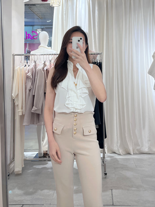 玫瑰吊飾ruffle雪紡背心 (訂貨7-14天)